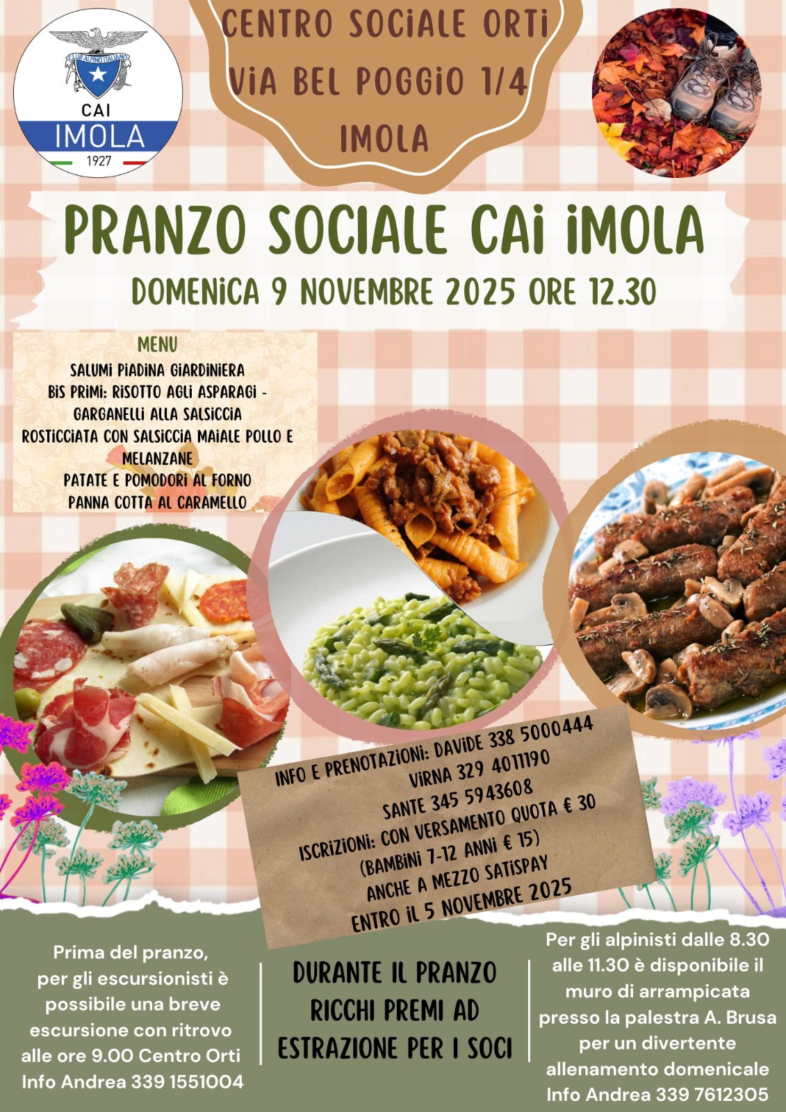 DOM 9 novembre | PRANZO SOCIALE | PRANZO SOCIALE CAI IMOLA CENTRO SOCIALE ORTI – VIA BELPOGGIO – IMOLA [locandina] |