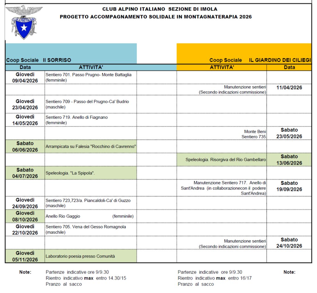CAI IMOLA: Andrea Bonaccorso 349 361 3088 – andrea.bonaccorso5@gmail.com