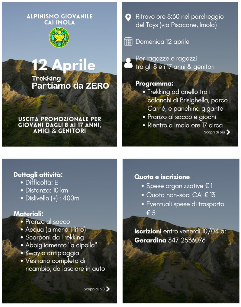 DOM 12 aprileALPINISMO GIOVANILETrekking PARTIAMO DA ZERO – Info (Whatsapp) AAG Gerardina Senese 3472536076 &nbsp [locandina]