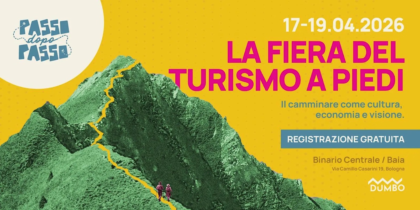 Dal 17 al 19 aprile 2026 si terrà a Bologna la prima edizione di “Passo Dopo Passo”, la fiera interamente dedicata al turismo a piedi. L’evento si svolgerà presso lo spazio DumBO (a circa 15-20 minuti a piedi dalla Stazione Centrale) e prevederà un biglietto di ingresso completamente gratuito previa registrazione.