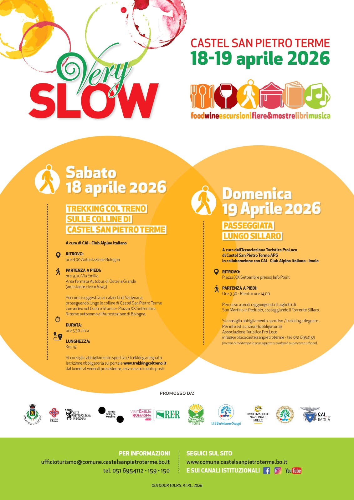 Torna il 18 e 19 aprile 2026 “Very Slow”, l’atteso appuntamento dedicato alla valorizzazione delle eccellenze enogastronomiche, del territorio e dello stile di vita sostenibile. Due giornate ricche di eventi animeranno il centro storico di Castel San Pietro Terme, trasformandolo in un laboratorio diffuso di esperienze tra sapori, tradizioni, natura e cultura, con un’attenzione particolare alle produzioni identitarie castellane.